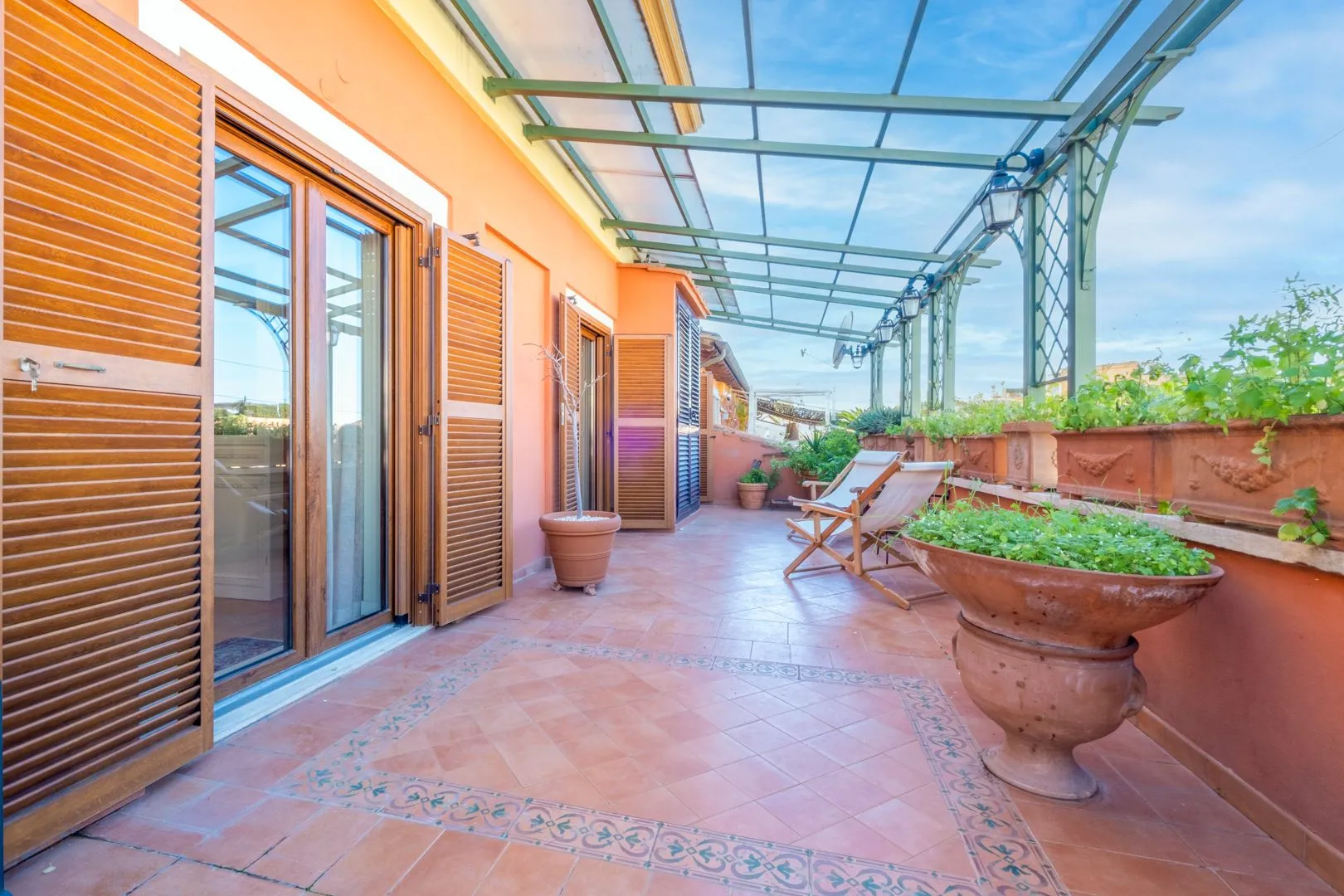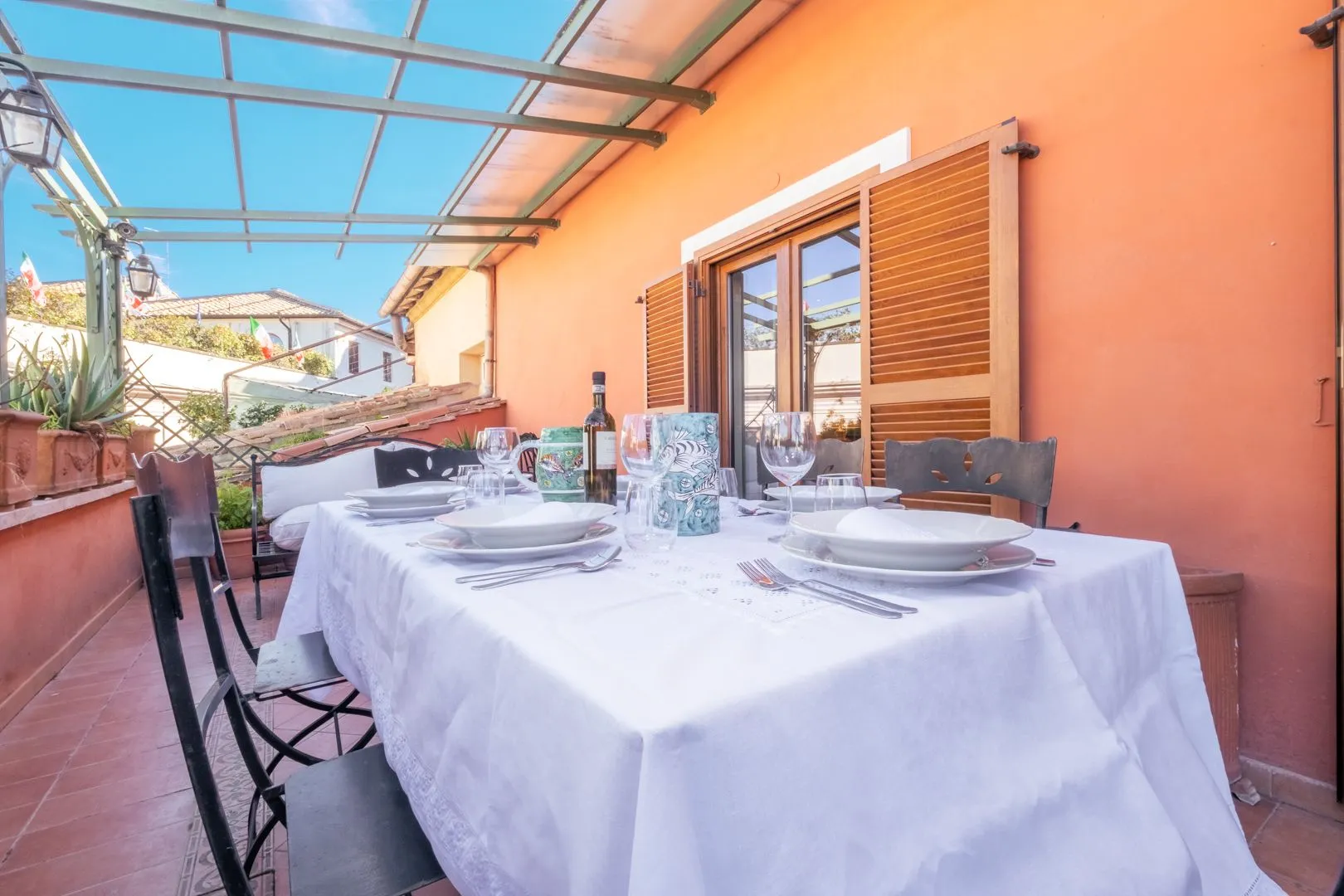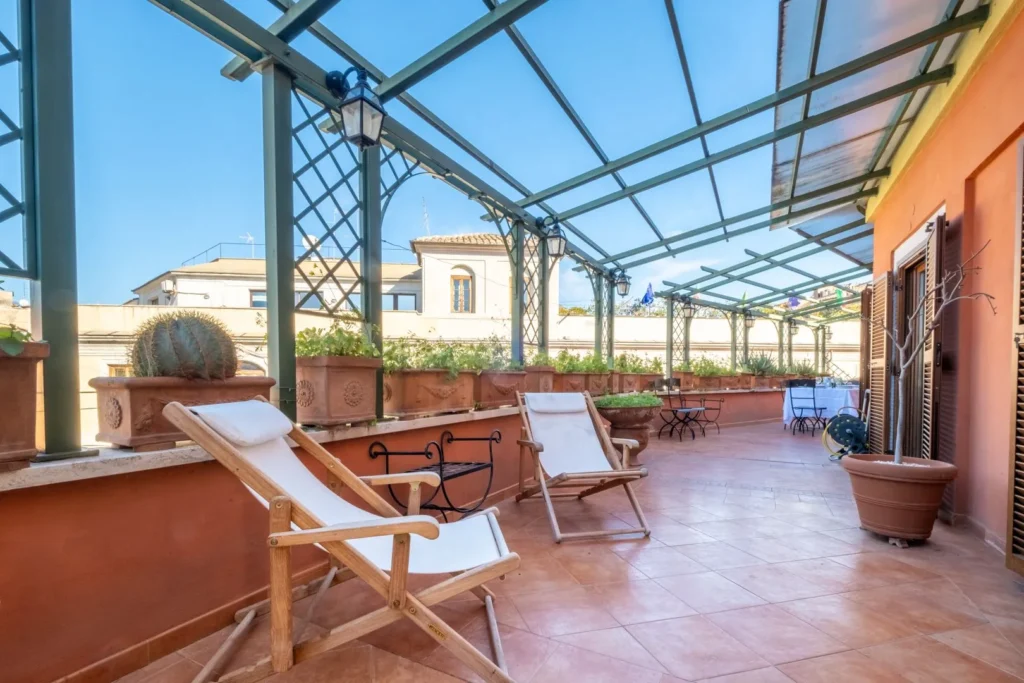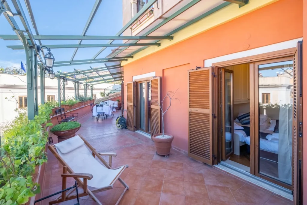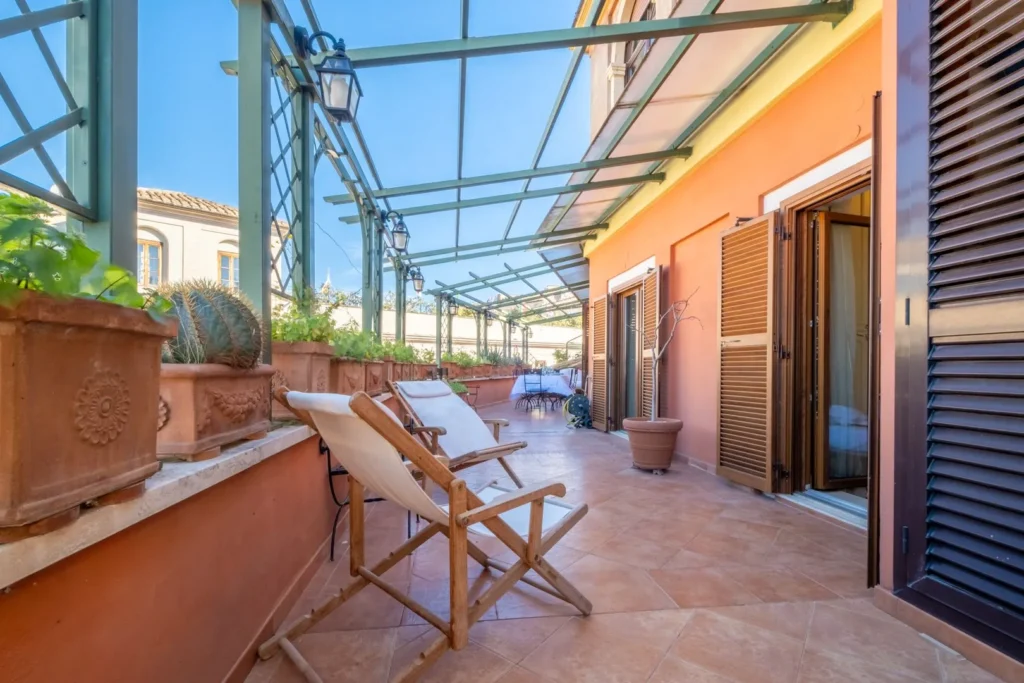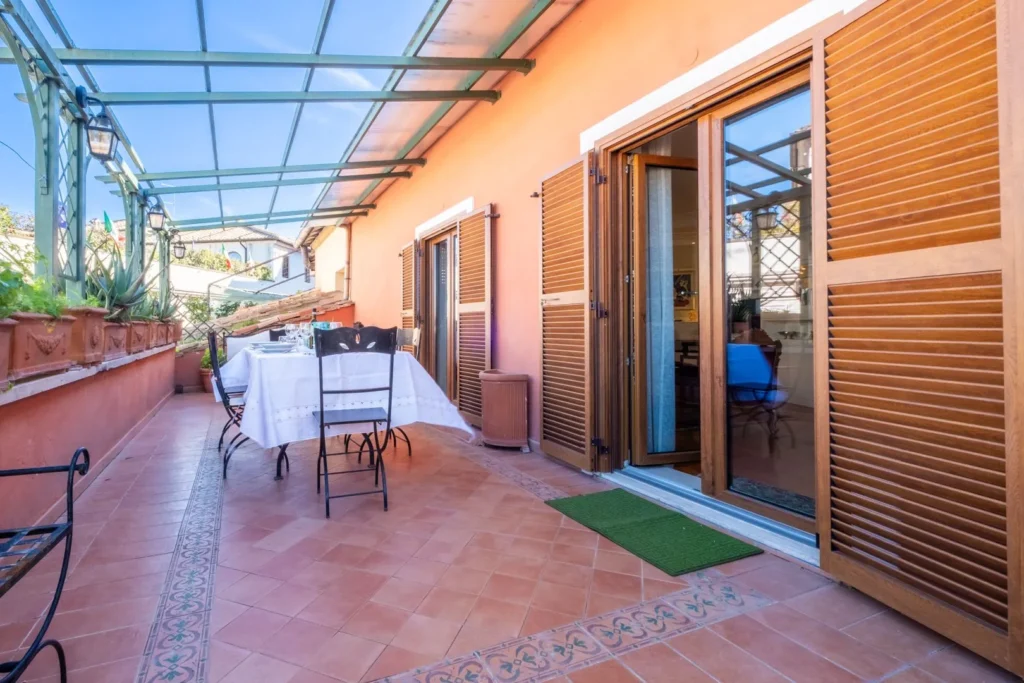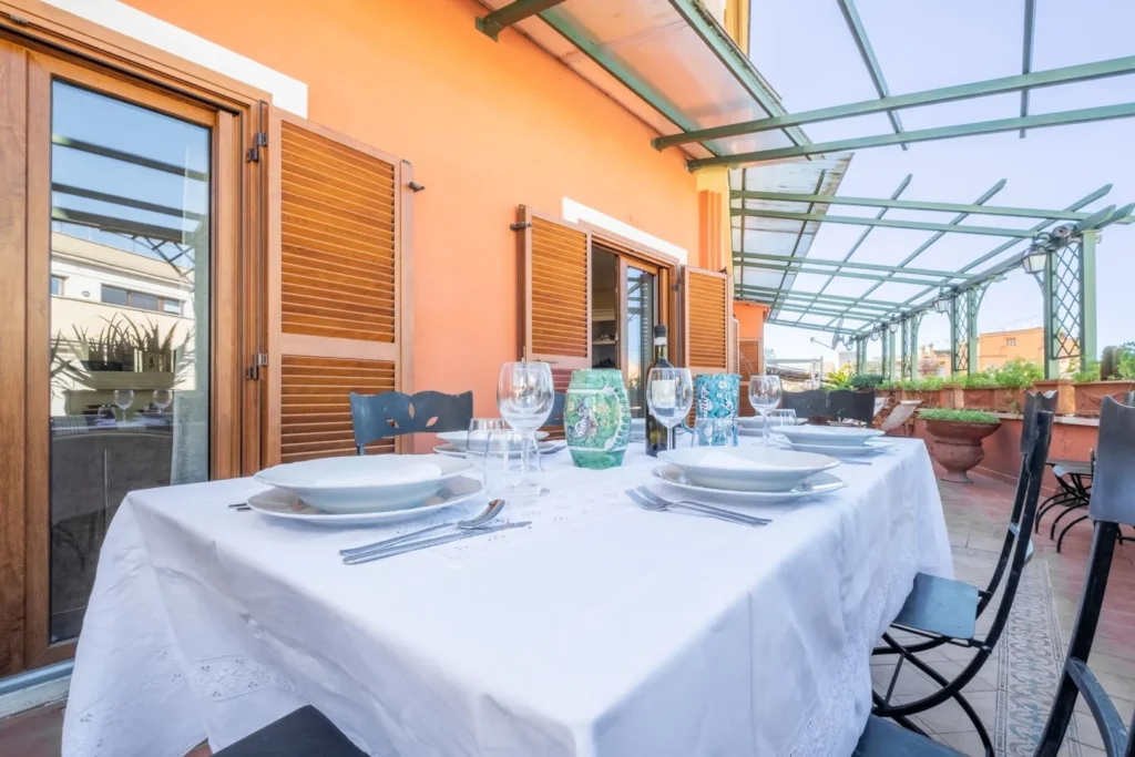 Grande balcone per pranzare o cenare all'aperto con vista sulla città